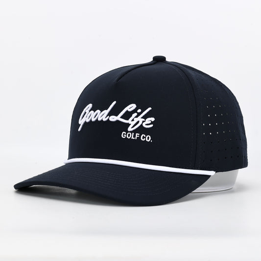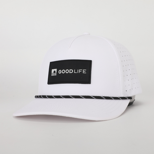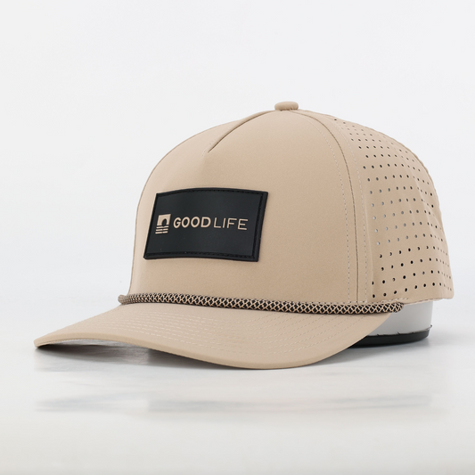 Just got this hat from Good Life Golf last weekend and is the 7th hat of theirs I own. Beyond being incredibly comfortable, fitting my head very comfortably (adjustable back), and staying cool due to the venting of the hat, I have nothing but excitement to add this to my collection. I have ran and worked out in these hats, been to summer activities and sweating, and have had such an easy time maintaining the look of the hat. There are no nasty sweat rings, and any smudges/dirt I pick up easily wipes off with a damp cloth and looks like new. Highly recommend to anyone!